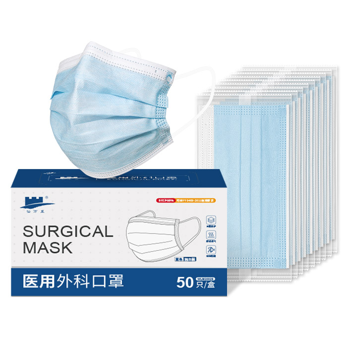 仙万里 WLM2002S 耳挂式非灭菌医用外科口罩 蓝色 单只独立装 1只/袋 50袋/盒