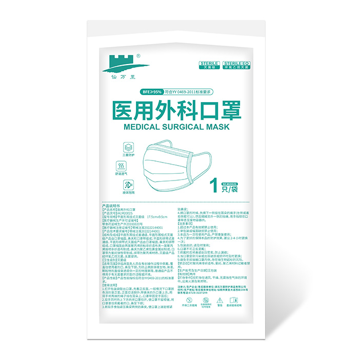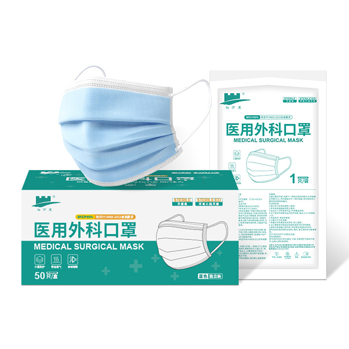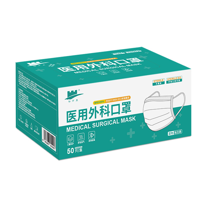 仙万里 WLM2002S 耳挂式医用外科口罩(灭菌级) 蓝色 纸塑袋独立装 1只/袋 50袋/盒